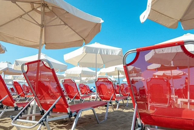“Δυο ξαπλώστρες, παρακαλώ.”